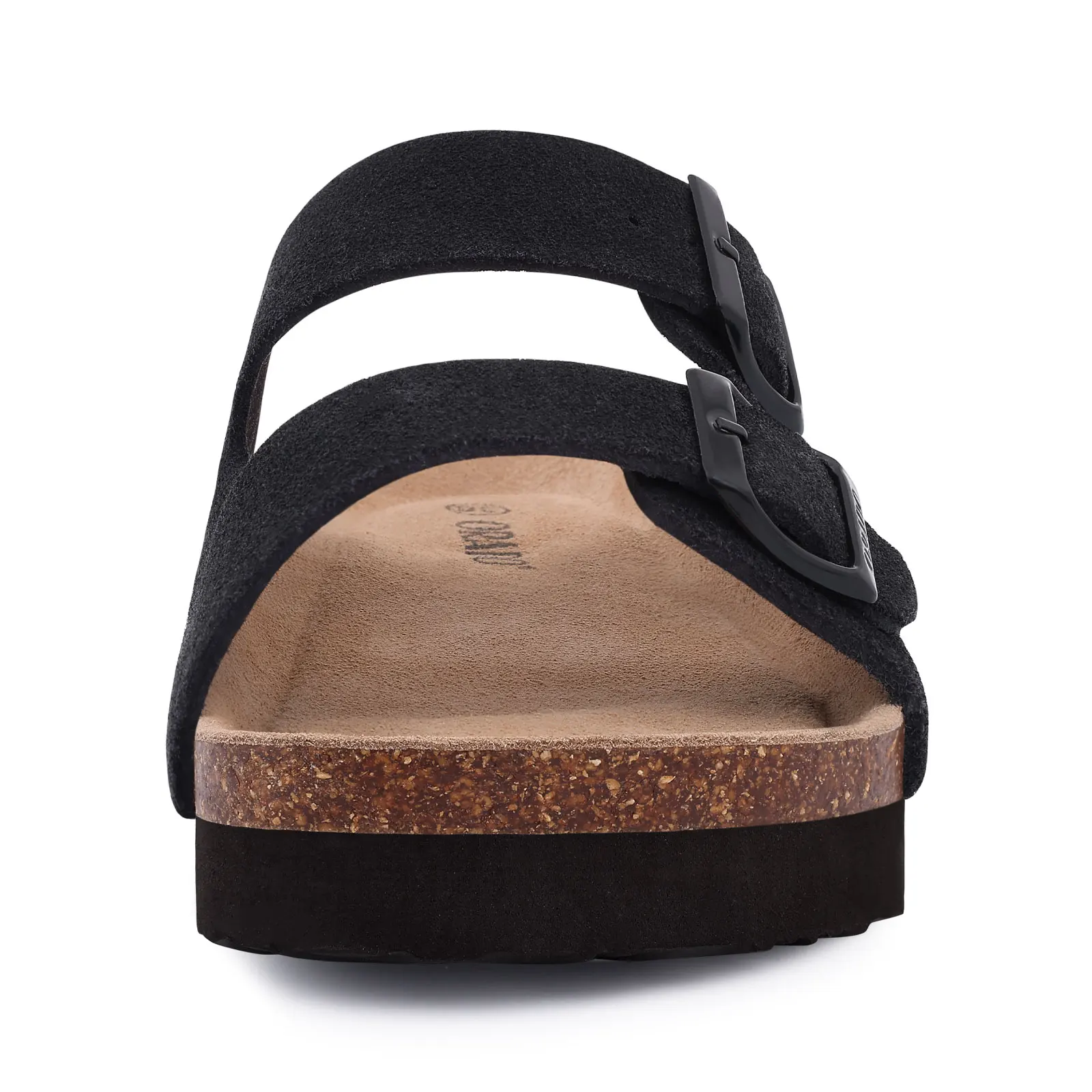 Kidmi New Men Sandals Men Double Buckle Sandals Cork Suede Men Slippers Outdoor Beach Slide Sandals Casual Soft Nonslip Sandals